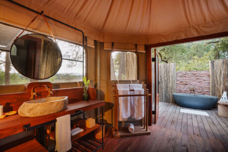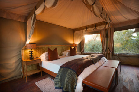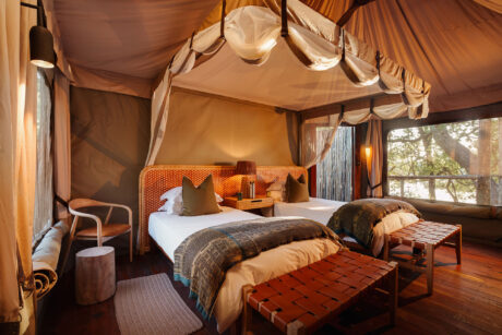 The rooms are large and well-spaced, with shaded decks that call out for an afternoon of birding, reading, sketching or even forty winks. The camp is unfenced so keep your binoculars to hand as you never know what animals will casually saunter past your tent. There are plenty of safari activities, too, including game drives; night drives to find serval, porcupines, bushbabies and perhaps a leopard; nature walks with an armed ranger; and off-roading to get closer to fascinating sightings.