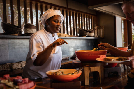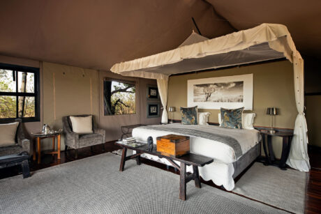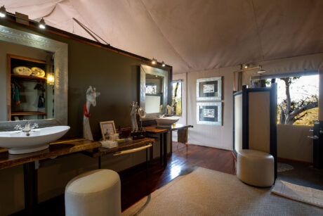 The camp has been beautifully designed to give you supreme comfort while still being sympathetic to the bush surroundings. Soaring thatched roofs are combined with polished walkways, low lighting and exquisite wildlife photographs. Highlights include a small gym, a boma open to the stars and the chance to take a helicopter flip!