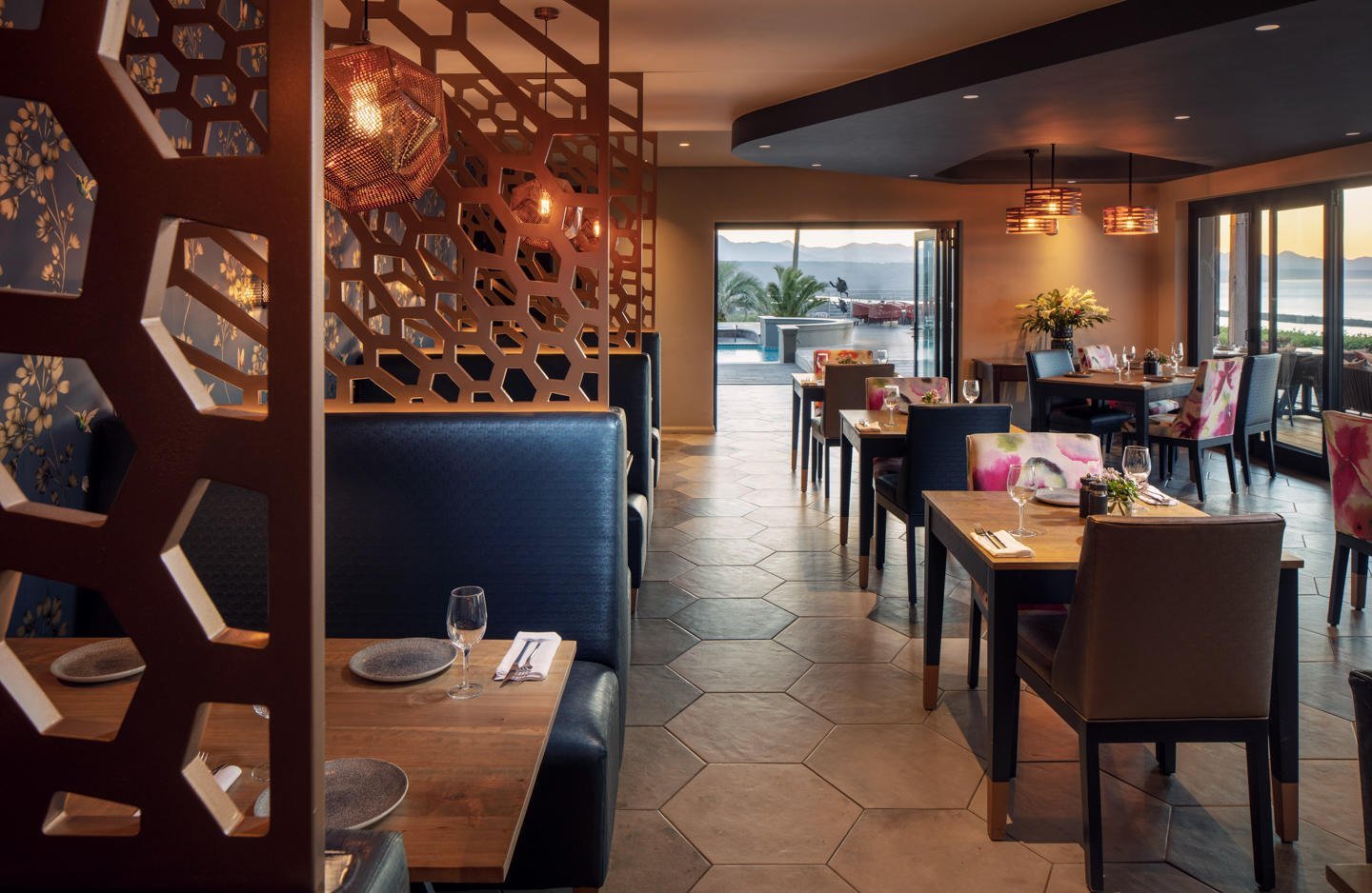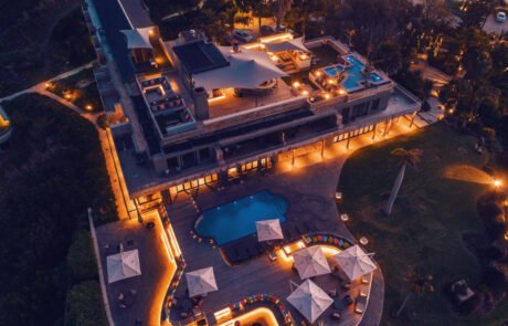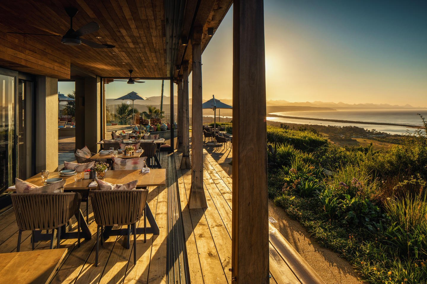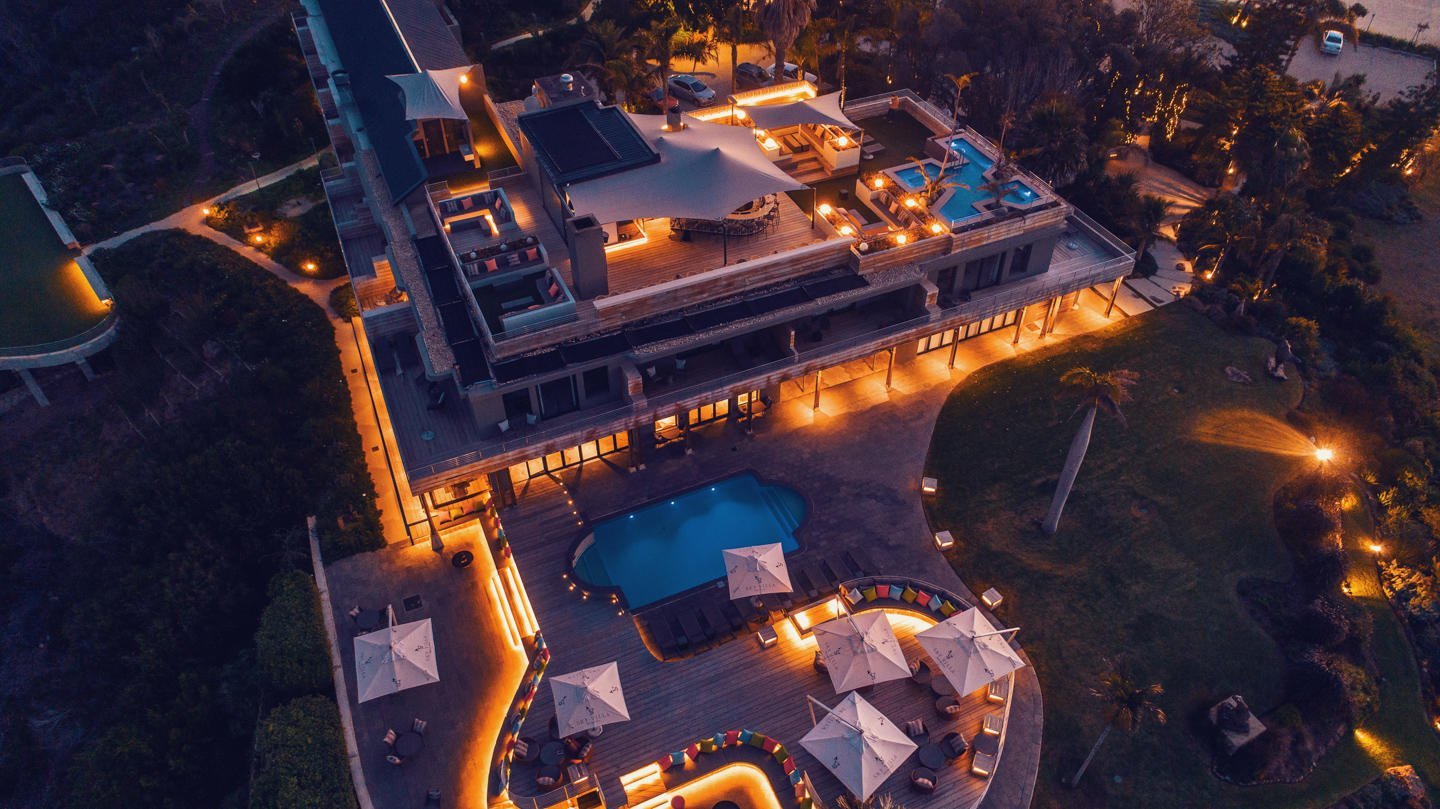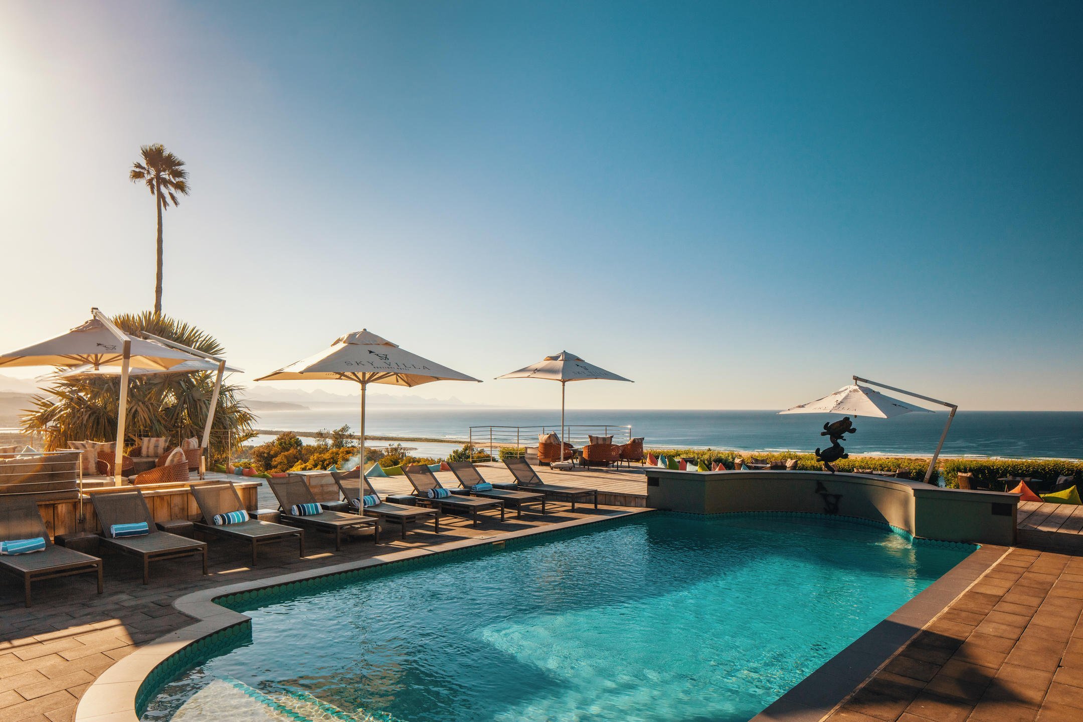 An architectural marvel, Sky Villa Boutique Hotel makes the most of Bahai Formosa or the Bay of Beauty, as Plettenberg Bay is known. The rooftop pool, open-air wellness deck and atmospheric art gallery meld stylishly with a sophisticated bar and impressive staircase. Bronze wildlife statues dot the lush gardens, which are also a haven for local birdlife. Inside or outside, the views of the Indian Ocean coastline and Outeniqua Mountains are beautiful. Plett is a Whale Heritage Site and offers superb hiking in the Robberg Nature Reserve.