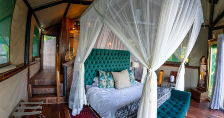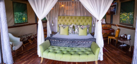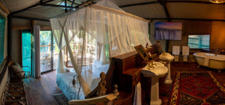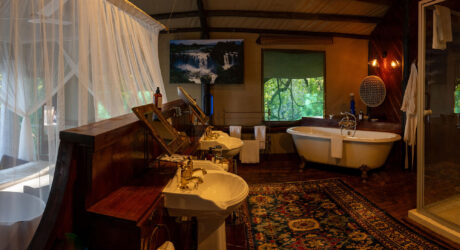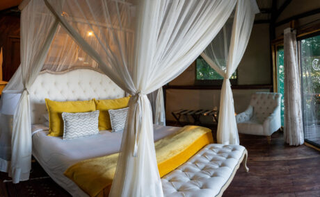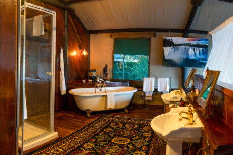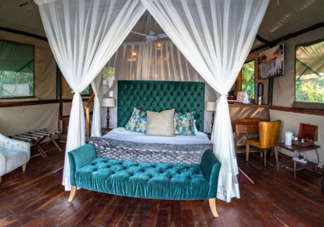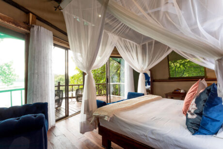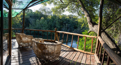While Zambia is home to the most famous waterfall in the world, it is also the site of over 400 others. Seven major falls lend their names to the treehouse river tents at Tintswalo Siankaba, a magical camp in riverine forest laid out over two islands in the Zambezi River. Each tent is individually decorated with a deck that overlooks the gently flowing water.