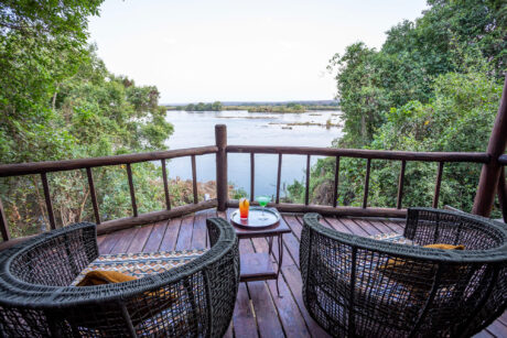 A lush island setting right on the water near the Victoria Falls